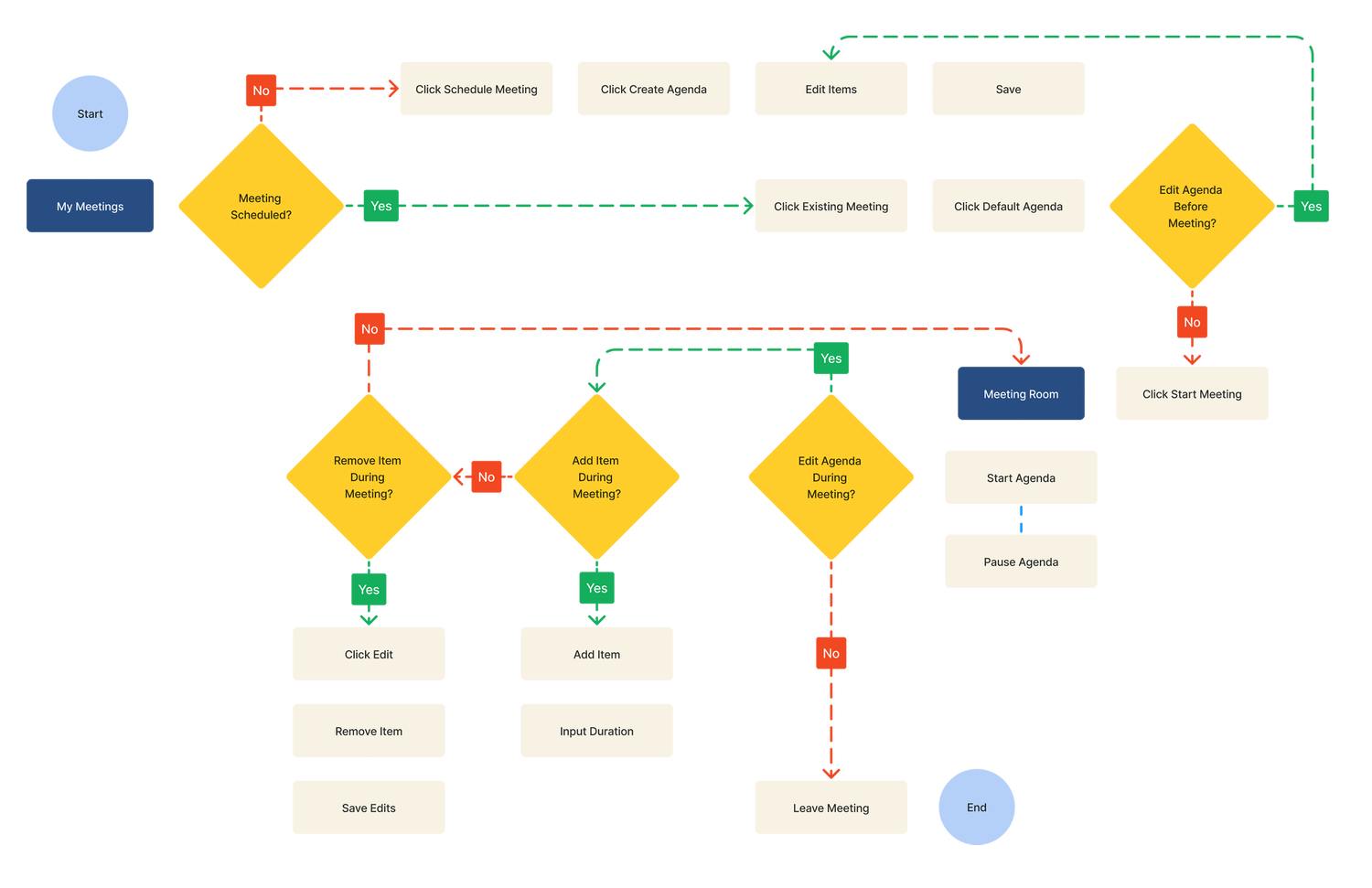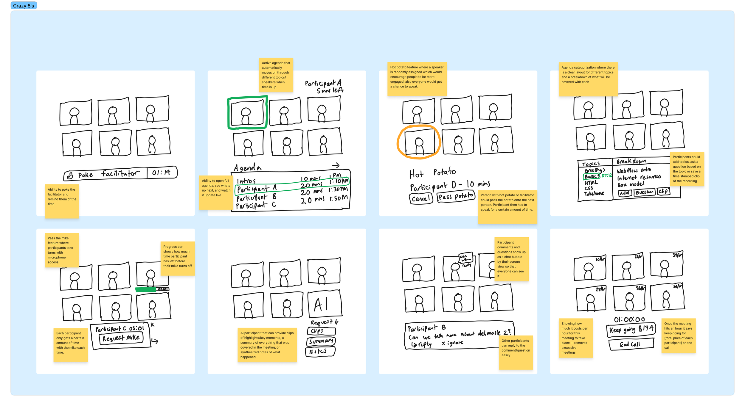 The research displayed a “cause and effect” between facilitators hosting disorganized meetings and participants not engaging during disorganized meetings. In order to create a more user-centric experience for both groups it helped to contextualize the primary audiences and level set their expectations and current pains.