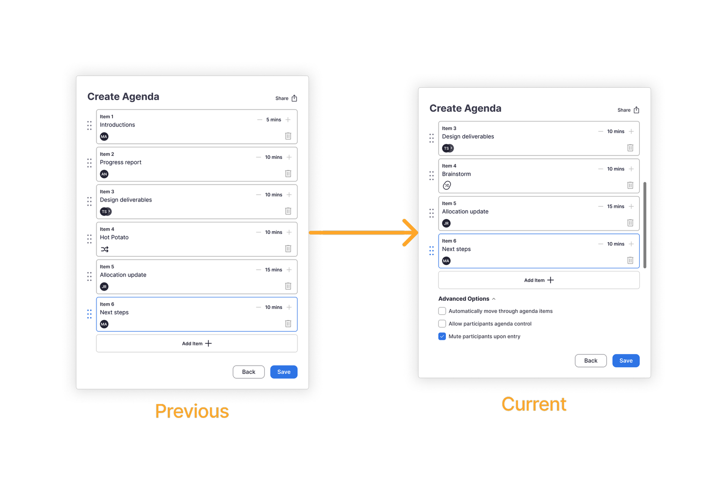 A dynamic agenda feature that allows creates more purposeful and engaging meetings by: