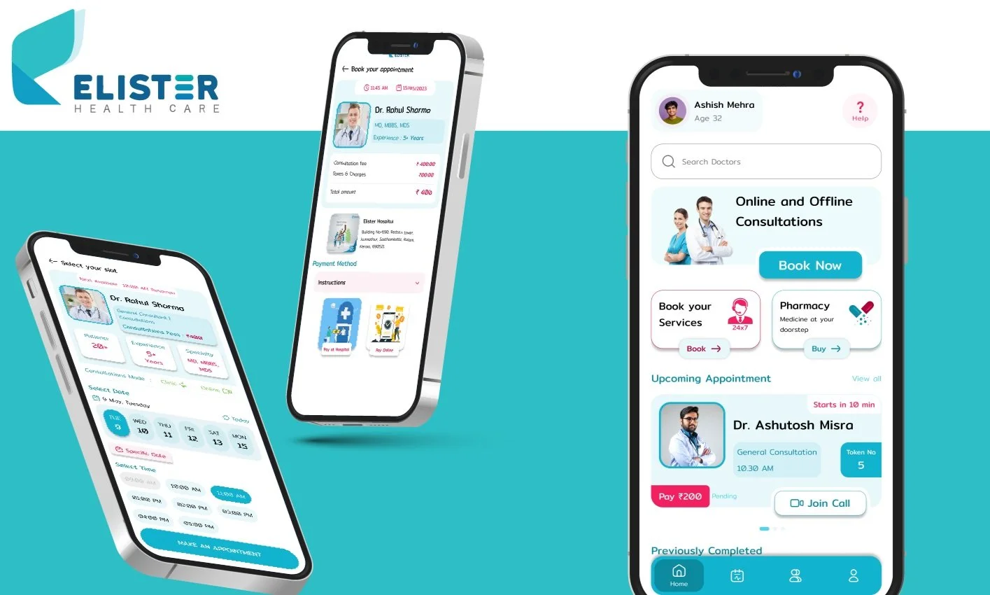 Our healthcare mobile app is designed to provide a convenient and comprehensive healthcare experience while still allowing dense information to occupy the screen. Users can easily register and verify their accounts using OTP for added security. Upon verification, they are directed to a user-friendly homepage that offers quick access to essential features. The homepage includes a profile card for managing personal information, online/offline consultation buttons for easy healthcare access, and a book your services button for scheduling appointments and accessing medical services.